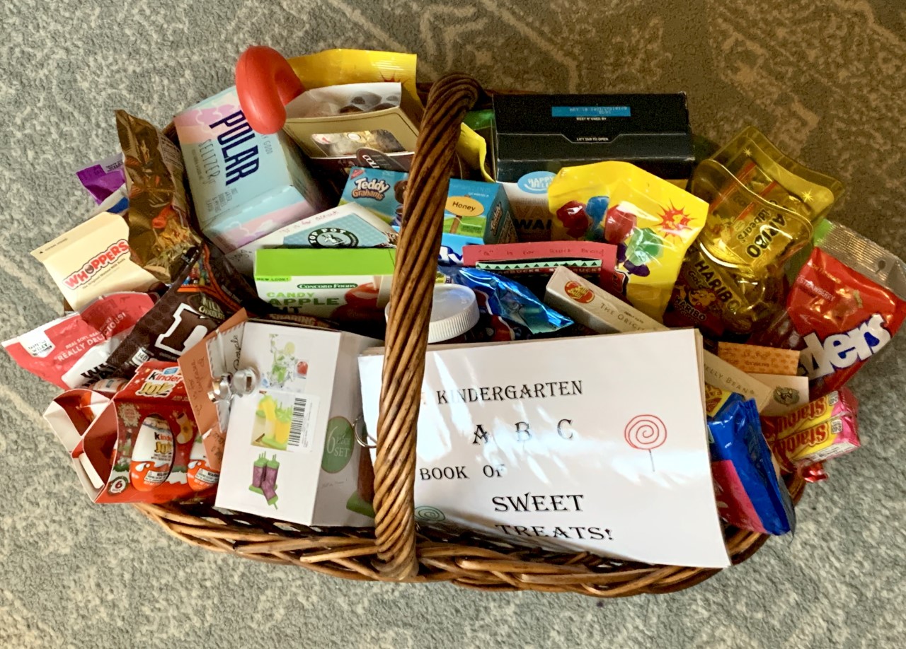 Our kindergarteners know their ABC’s… and their desserts! This basket is a delicious trip through the alphabet with a sweet treat for each and every letter. From Bubble gum to York peppermint patties, there’s something for everyone. They’ve even included gift cards to a few local spots so you can go out for dessert! And the icing on the cake is a beautiful book with a page for each treat, hand-drawn by the Kindergarten class.