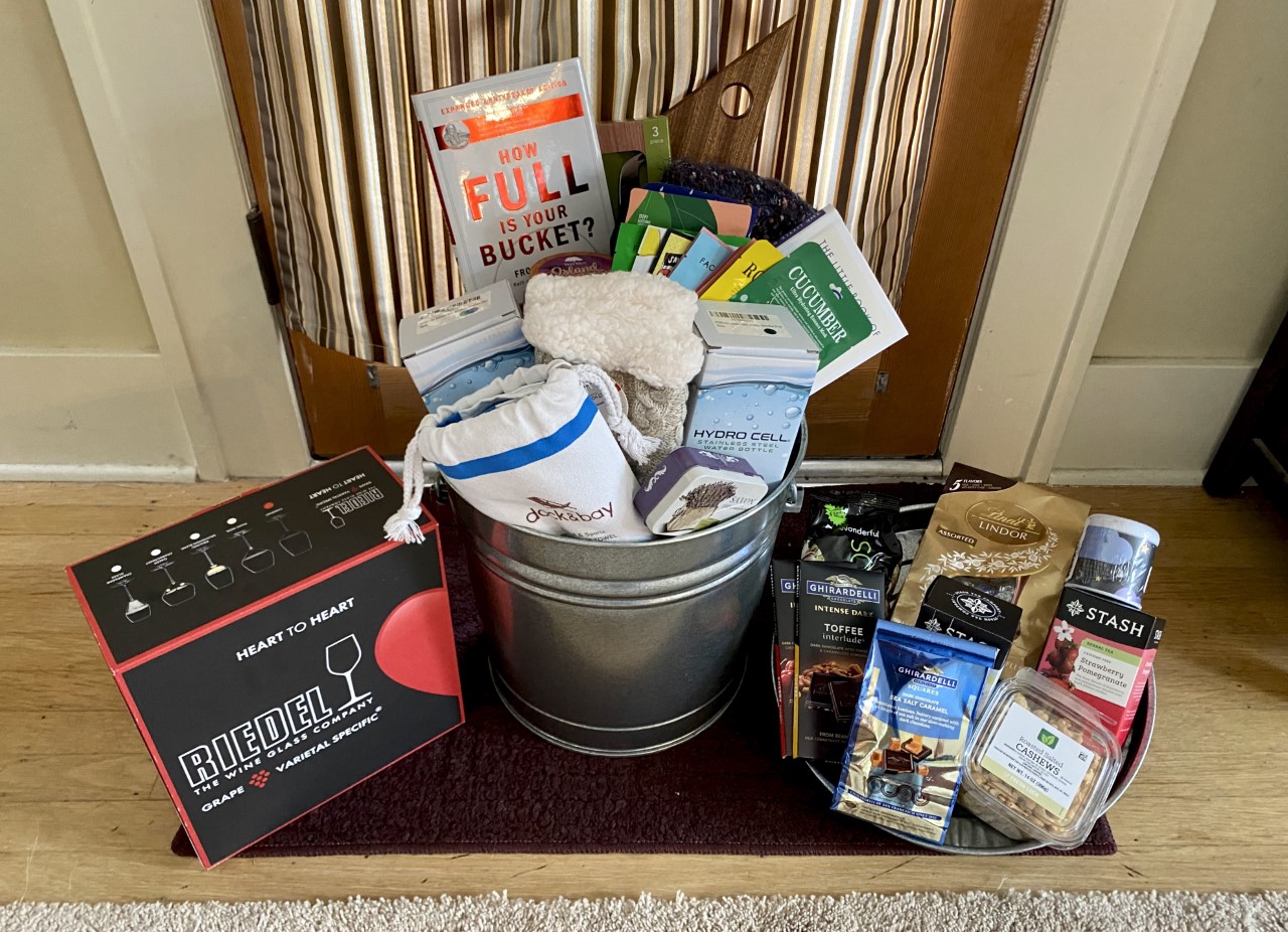 The first graders are spreading love and filling buckets! Get started with a copy of the book “How Full is Your Bucket” and continue the self-care with a cozy blanket, face masks, sugar scrub, lavender soap, and more. Enjoy a fancy snack with a custom-made cheese board and cheese knives, Riedel wine glasses, and assorted chocolates, nuts, and teas. There are lots of other surprises in this indulgent basket (including $75 to Total Wine and More and a $25 to Starbucks), which is topped off with a very special book, “First Grade’s Bucket Filling Tips.”