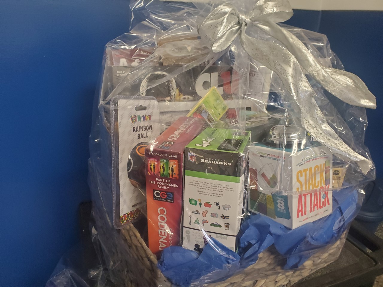 This basket contains endless fun brought to you by the 5th and 6th grade boys! There are more than 10 games, including Seahawks Spot It, Codename, Mandalorian Monopoly, and Harry Potter Clue. Create some fun of your own with a $50 gift card to Snapdoodle Toys and Games (formerly Top Ten Toys). This basket also includes 25 rare Pokemon cards… and a set of one-of-a-kind Pokemon cards starring the 5th and 6th grade boys!
